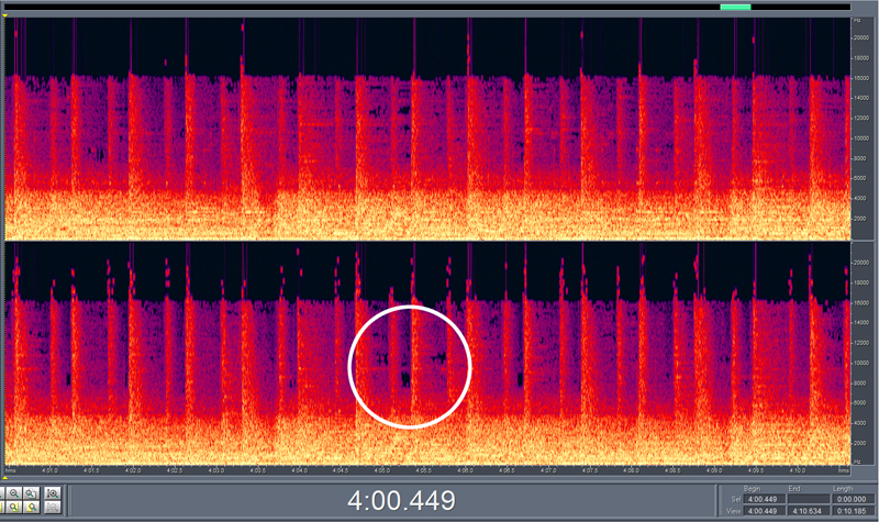 hopefully that's clear enough. once this filtering has been done, it can't be undone, so a rip of a CD burned from mp3s will still show the same characteristics when viewed in an editing program like this.
