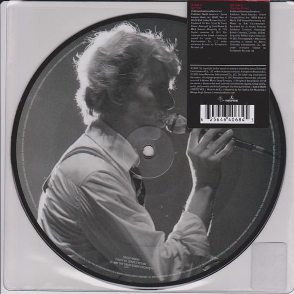 finally got this. the a-side remaster and/or the pressing is not good. distorted here and there and a pale shadow of the original single. thankfully the b-side is free of issues and is a step up from the DVD soundtrack. the opening sax notes are buried in audience noise on the DVD, but are clear as a bell here. not the most exciting track selection but one of the better b-sides from the pic disc releases.